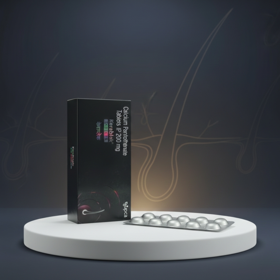 Kerablak Calcium Pantothenate is the calcium salt of pantothenic acid (Vitamin B5), a vital nutrient that plays an important role in the synthesis of coenzyme A (CoA). This helps in the metabolism of carbohydrates, fats, and proteins, contributing to overall energy production. Calcium Pantothenate tablets are commonly prescribed to support general health, improve skin health, and assist in cellular metabolism. This supplement is used in managing conditions caused by Vitamin B5 deficiency.