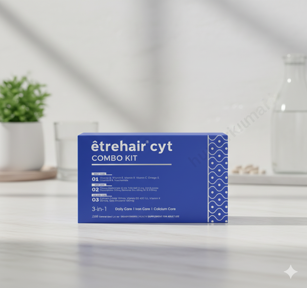 The EtreHair CYT Combo Kit is an advanced, dermatologist-recommended hair care regimen designed to combat hair thinning, hair fall, and poor scalp health. This powerful combination kit works by deeply nourishing hair roots and strengthening follicles to promote thicker, fuller, and healthier hair growth.