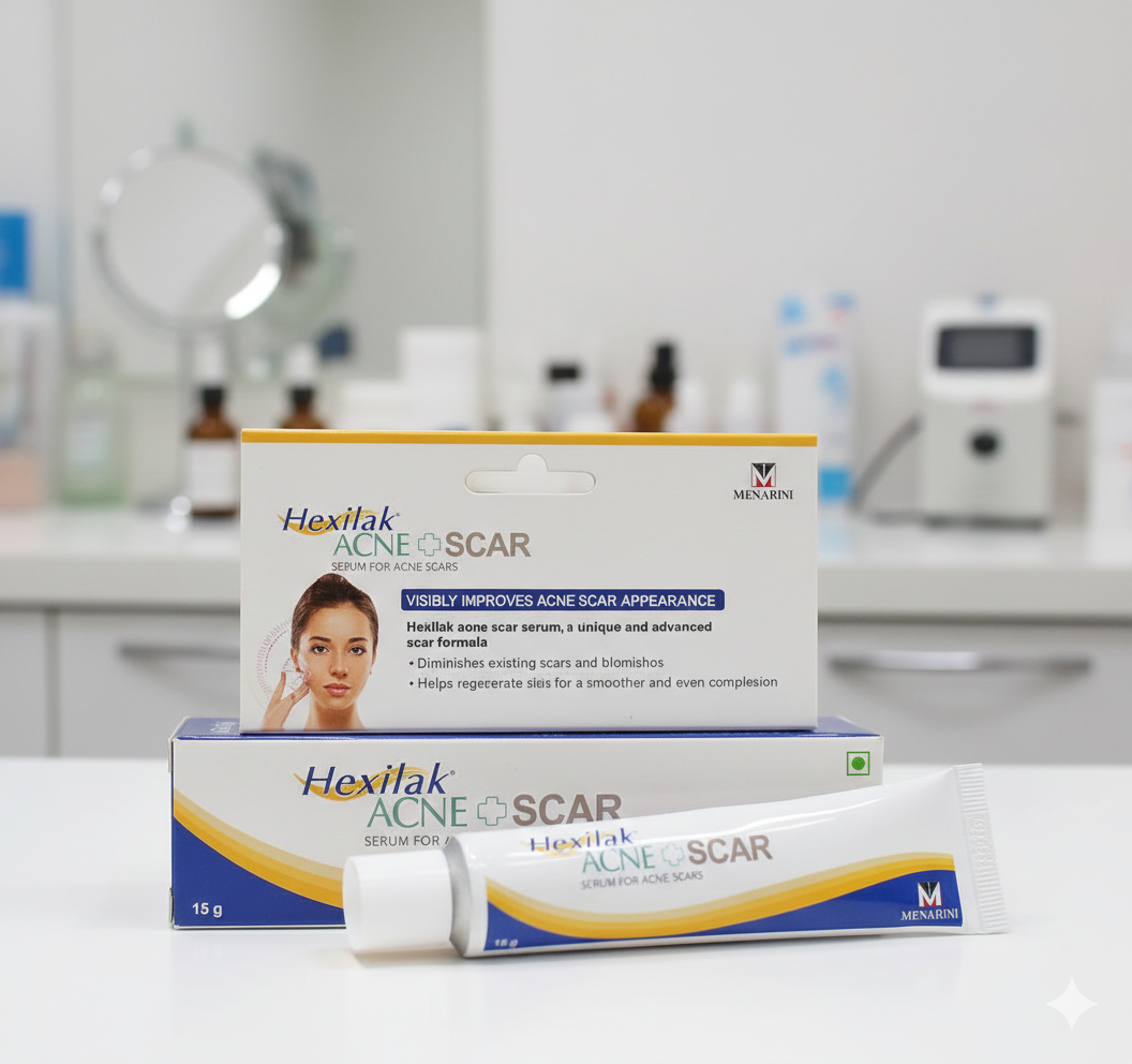 Hexilak Acne Plus Scar Serum is a scientifically formulated gel designed to help reduce acne scars, dark spots, and blemishes while improving skin texture. Its advanced silicone-based formula is enriched with ingredients that promote skin healing, lighten marks, and provide hydration. The serum works by softening, flattening, and fading scars over time, making your skin look clearer and smoother.