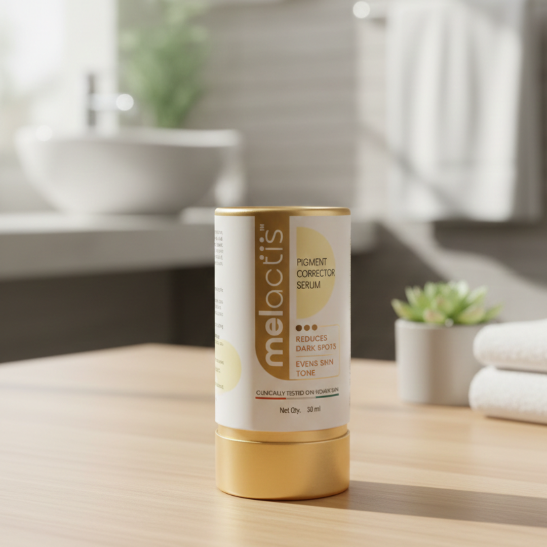Melactis Pigment Corrector Serum is a scientifically developed skin brightening formula designed to reduce stubborn pigmentation, dark spots, and uneven skin tone. This advanced corrective serum works at the root level by helping regulate excess melanin production, which is one of the main causes of discoloration and patchy skin.