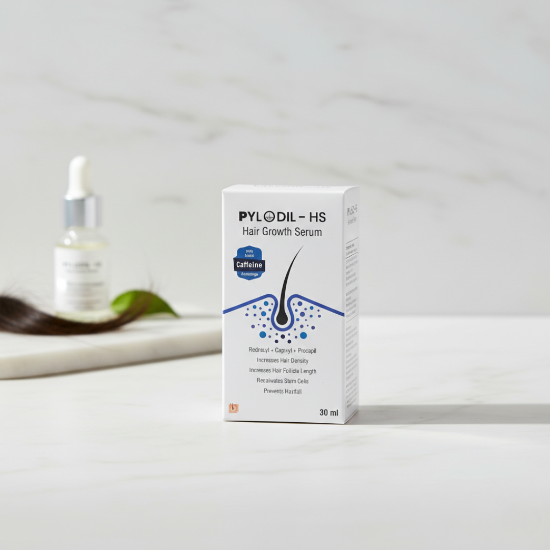 Pylodil-HS Hair Growth Serum is a scientifically formulated solution crafted for individuals dealing with hair thinning, shedding, and poor scalp health. Powered by cutting-edge ingredients like Redensyl®, Capixyl, Procapil, and Caffeine, this lightweight, non-greasy serum penetrates deeply to stimulate dormant follicles, reduce hair fall, and support healthier, thicker strands over time.