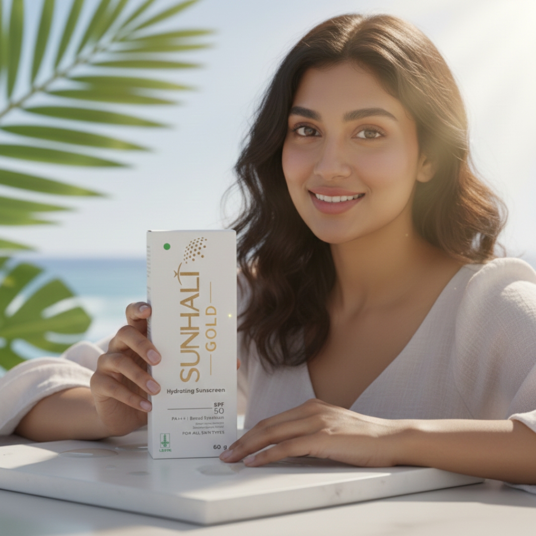 Sunhalt Gold Hydrating Sunscreen SPF 50 offers superior protection against harmful UVA and UVB rays while providing deep hydration to the skin. This lightweight, non-greasy formula is enriched with nourishing ingredients like antioxidants, vitamins, and hydrating agents to keep the skin moisturized throughout the day. It has a high SPF of 50, offering broad-spectrum protection ideal for daily use, whether you’re out in the sun or under indoor lighting that can still emit damaging rays. The sunscreen is designed to absorb quickly, leaving the skin feeling soft, refreshed, and protected without any white cast or residue.